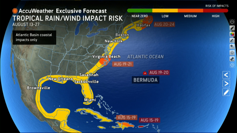 Regardless, the environment ahead looks ripe for Erin to become a powerful major (Category 3 or stronger) hurricane this weekend, and the storm is forecast to be nearing Category 4 strength as it turns into the western Atlantic early next week, noted WPLG hurricane specialist Michael Lowry in an Aug. 14 Substack post.